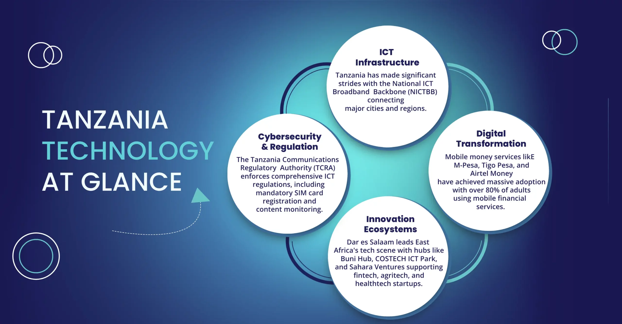 Le secteur technologique le plus avancé de Tanzanie. D'immenses opportunités existent en s'appuyant sur l'infrastructure de l'argent mobile pour offrir une assurance numérique, des prêts aux PME et des solutions de paiement transfrontalières.